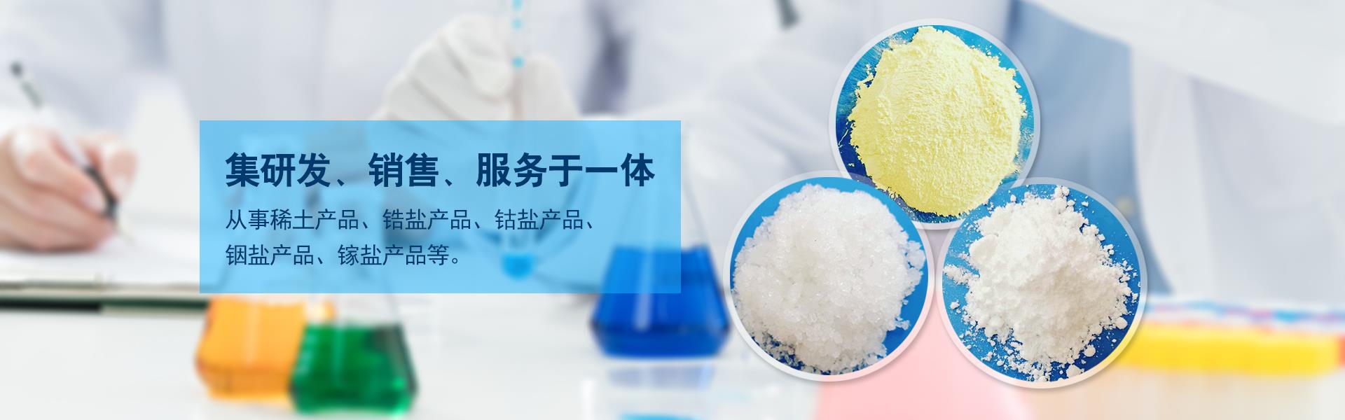 公司從事醫(yī)藥中間體,石油催化,有機合成,油田采油領(lǐng)域研發(fā)以及無水氯化鹽類產(chǎn)品,化工原料、中間體的銷售、服務(wù),得到了較強的市場競爭力和較高的市場口碑。主要產(chǎn)品分為五大系列:一,稀土系列(稀土氧化物、稀土硝酸鹽、稀土碳酸鹽、稀土氯化鹽、稀土硫酸鹽、稀土醋酸鹽、稀土草酸鹽、稀土氟化物);二,鋯系產(chǎn)品(硝酸鋯、氧化鋯、醋酸鋯、氧氯化鋯、碳酸鋯):三,鈷系產(chǎn)品(硫酸鈷、硝酸鈷、氧化鈷、碳酸鈷、氫氧化鈷);四,銦系產(chǎn)品(硝酸銦、氯化銦、氧化銦、氫氧化銦);五,鎵系產(chǎn)品(硝酸鎵、氯化鎵、氧化鎵)。